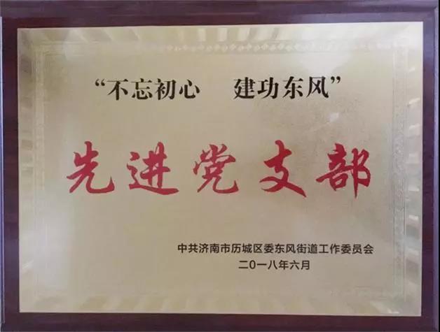 2018年6月30日,在建黨97周年之際,中共濟南市歷城區委東風街道工作委員會舉辦了“不忘初心,建功東風”表彰先進暨獻禮七一活動,沃爾德集團黨支部被授予“先進黨支部”的榮譽稱號。