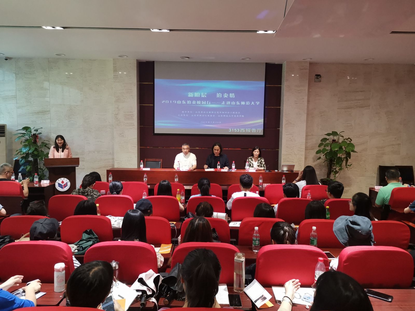 2019年5月23日下午,由山東省社會新階層黨外知識分子聯(lián)誼會作為指導(dǎo)單位,山東省拍賣行業(yè)協(xié)會、山東師范大學(xué)美術(shù)學(xué)院聯(lián)合主辦的“新階層·拍賣情”2019山東拍賣校園行——走進(jìn)山東師范大學(xué)活動在千佛山校區(qū)順利舉行。