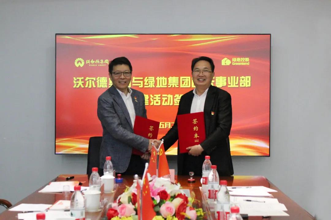 黨建共建簽約儀式上,綠地集團總裁助理、山東事業部黨委書記、總經理薛明輝與沃爾德集團黨支部書記、董事長林擘共同簽訂《黨建共建協議書》,并為“綠地山東—沃爾德集團黨建共建單位”揭牌,標志著雙方正式確立黨建工作和業務雙線合作的新型關系,將進一步強化“兩個黨組織”的戰斗堡壘和黨員先鋒模范作用。雙方也將以此為契機,充分發揮各自優勢,通過加強交流、互助合作,進一步促進各領域的合作共贏。