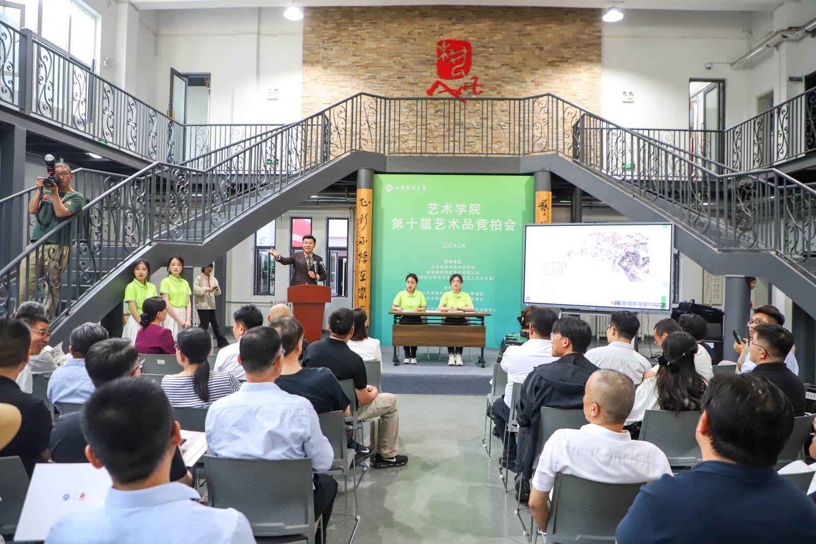 4月27日,山東財經(jīng)大學藝術學院第十屆藝術品競拍會圓滿舉辦。本次活動由山東財經(jīng)大學藝術學院主辦;山東省新的社會階層人士聯(lián)誼會、濟南市新的社會階層人士聯(lián)誼會、沃爾德集團、自貿試驗區(qū)濟南片區(qū)文化藝術品展示交易中心參與支持;山東省青年美術家協(xié)會、金諾國際拍賣集團有限公司、山東財經(jīng)大學合作發(fā)展處(校友工作辦公室)進行指導。山東省新的社會階層人士聯(lián)誼會副會長、沃爾德集團總裁、金諾國拍集團董事長商雪梅,濟南市新的社會階層人士聯(lián)誼會副會長、金諾國拍集團總裁位琳參加本次活動。金諾國拍集團副總裁、第五屆“中拍杯”全國拍賣師大賽“銀槌”主金坤做示范拍賣。